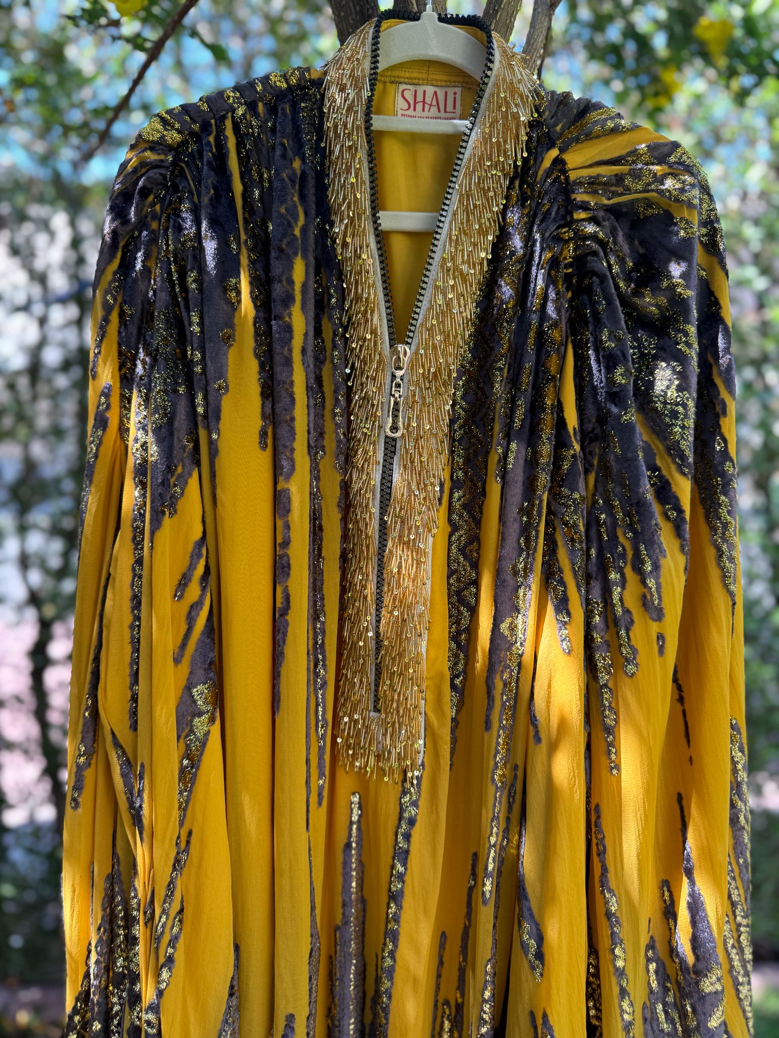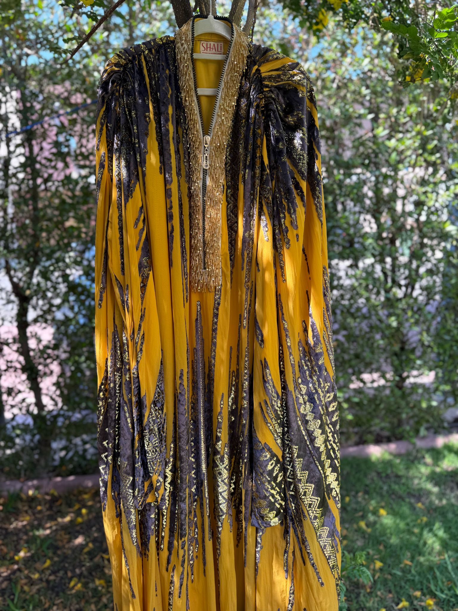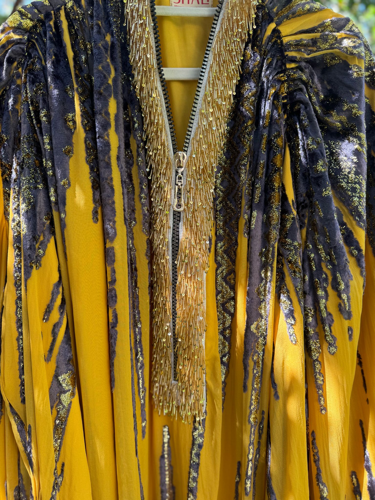 نوع القماش : حرير بيور ومخمل وزري ذهبي